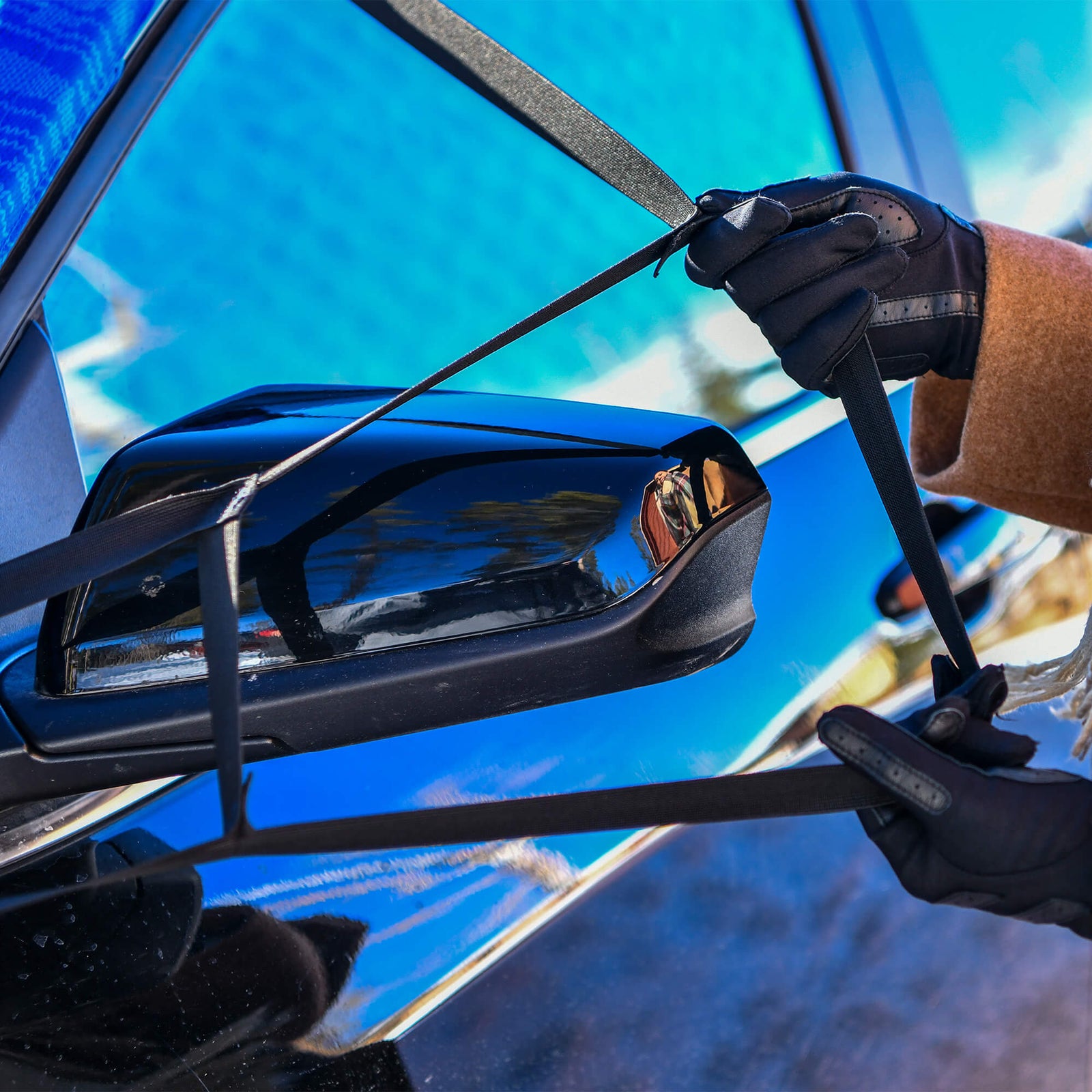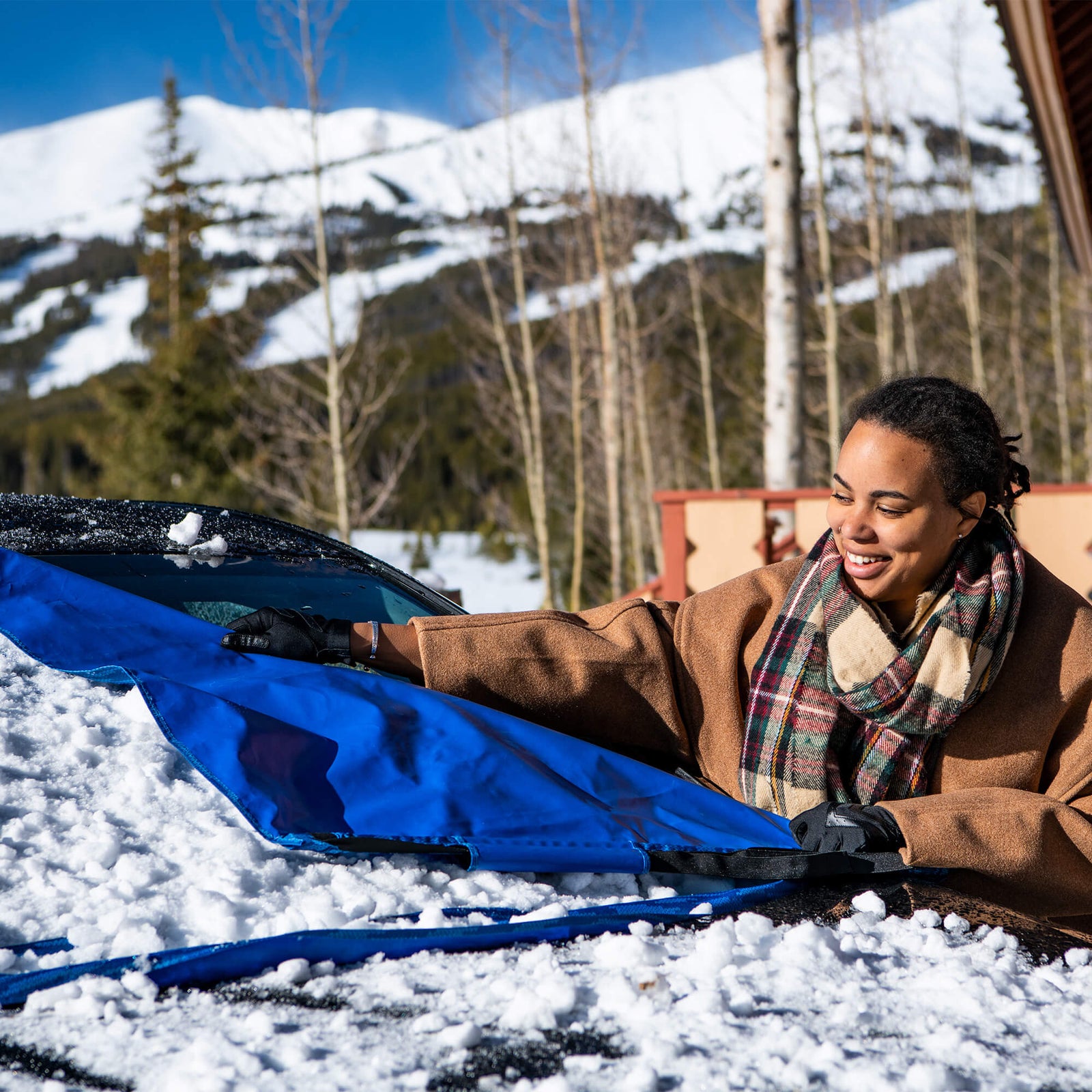 • COVERS WINDSHIELD, WIPERS, AND SIDE VIEW MIRRORS | The frost windshield cover reduces the need to scrape or de-ice your vehicle and prevents your windshield and wiper blades from freezing. With two sizes, you can find the perfect balance of a snug fit and great coverage against wintery elements.