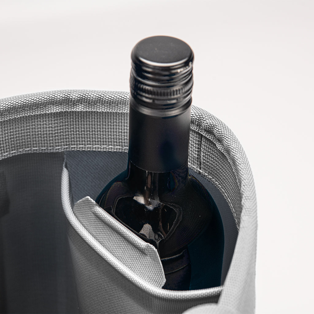 What is the benefit of the open-top design? This design allows for easy access to drinks and snacks at gatherings or excursions. And, the two sleeves allow for easy transfer of wine bottles.