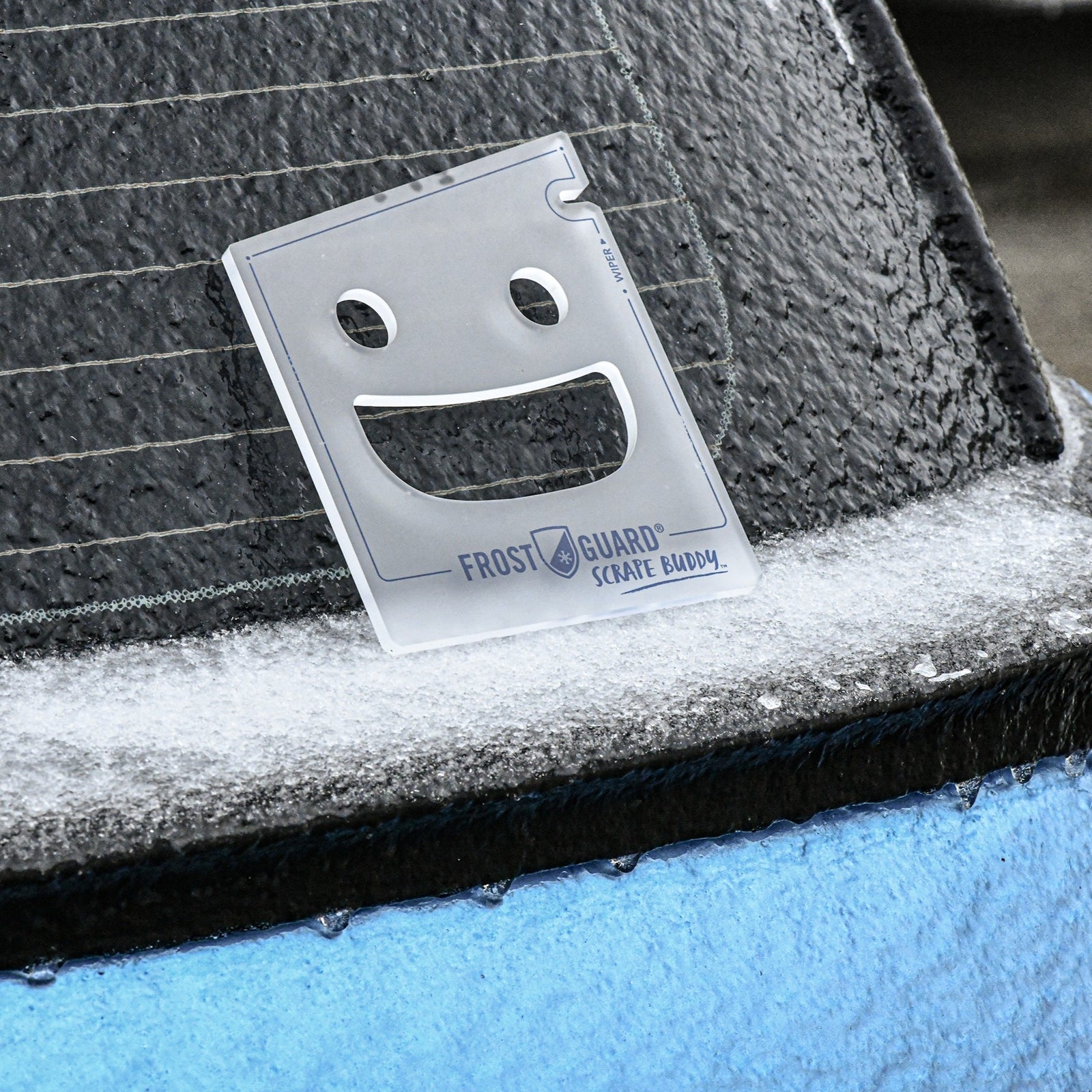 Scrape Buddy is the perfect solution for easily removing frost, ice, or snow from surfaces that aren’t covered by your FrostGuard Windshield Cover. Its unique, ergonomic design allows you to scrape wide areas quickly. Brighten up your winter mornings by scraping with a smile!