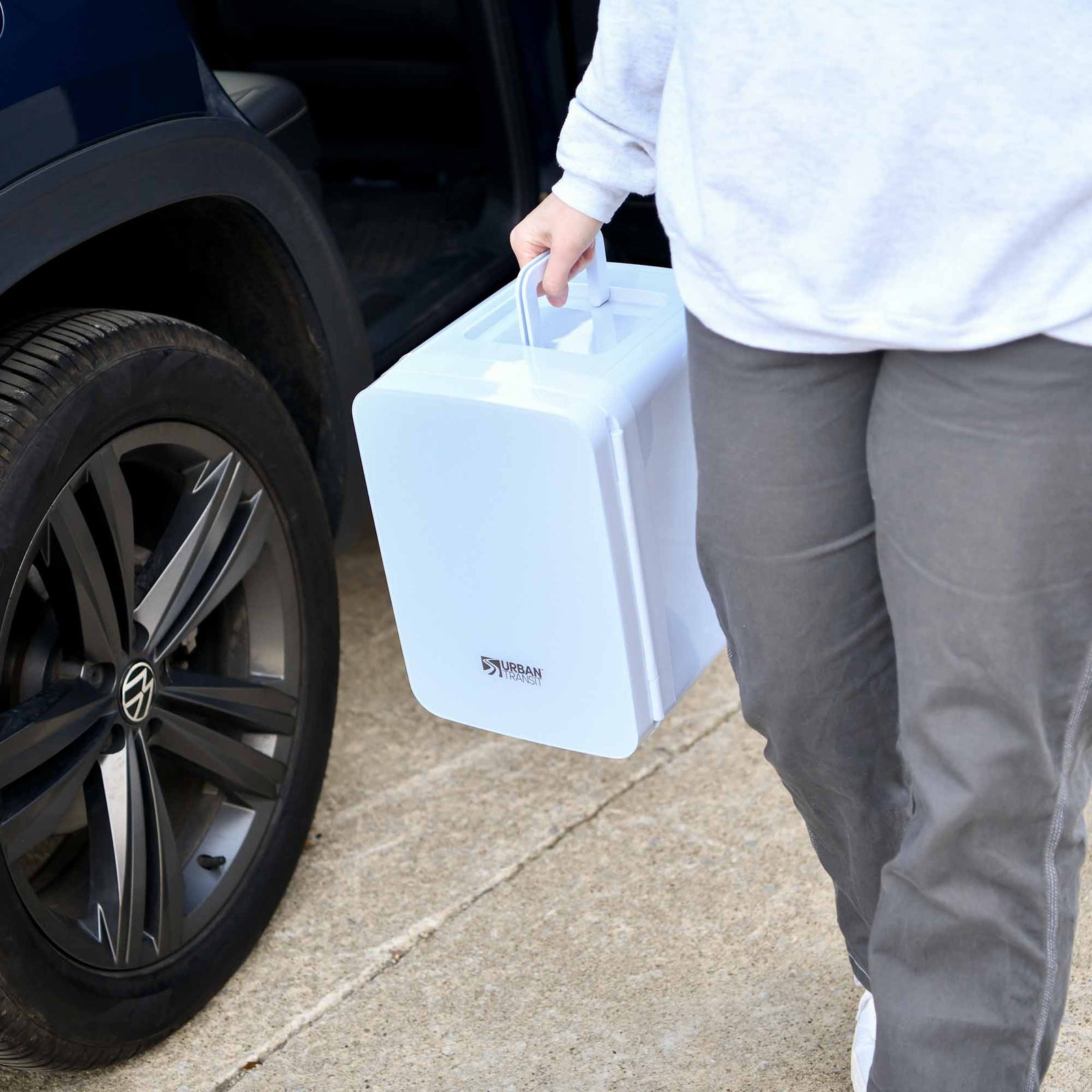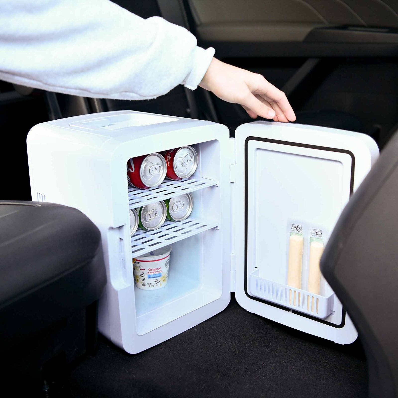 Our spacious 10L portable mini fridge is equipped with cooling and warming features! A convenient, well-built, and stylish way to keep beverages, snacks, and other items at the ideal temperature, even if you are on the road.