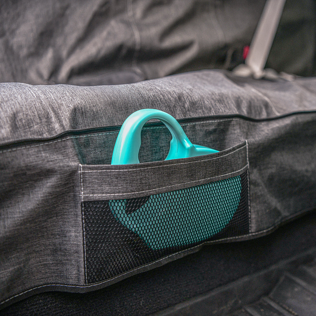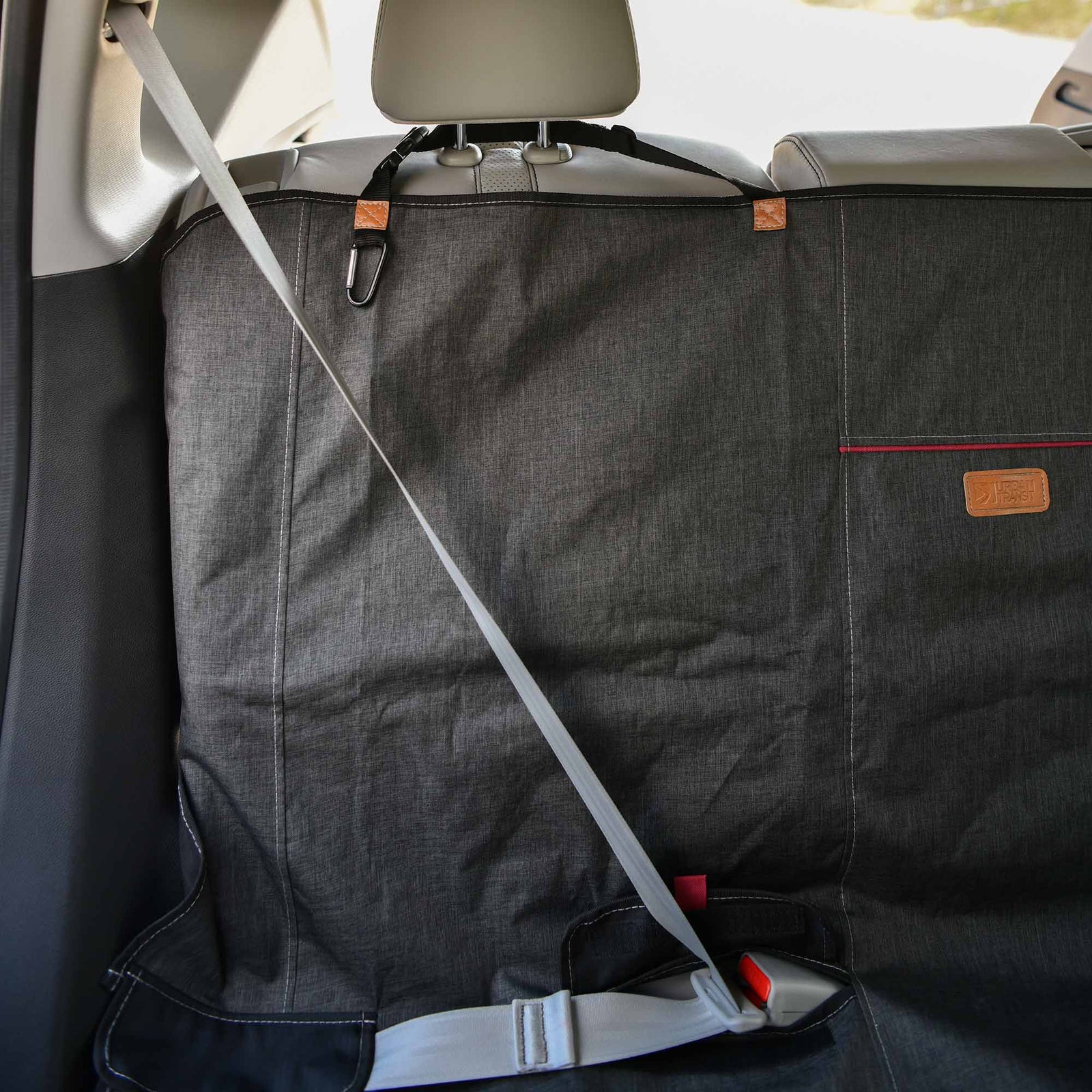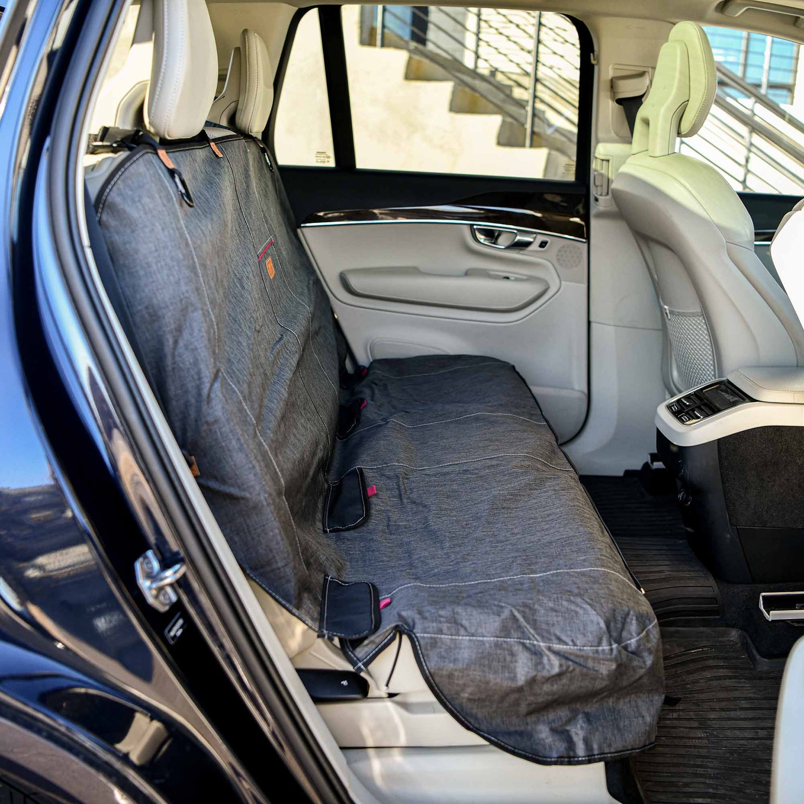 Maximize back seat protection with a durable premium-quality cover to protect the vehicle from wear, rips, tears, scratches, and stains from pets and babies. The cationic fabric design repels pet hair and washes easily; keeping your car protected from the messiest of adventures!